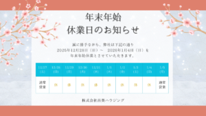 日頃より格別のお引き立てを賜わり厚く御礼申し上げます。誠に勝手ながら下記の期間、夏期休業(お盆休み)とさせていただきます。 2025年8月10日(日)~ 2025年8月13日(水) お客様には大変ご迷惑をおかけいたします […]